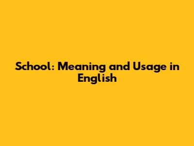 School: Meaning And Usage In English